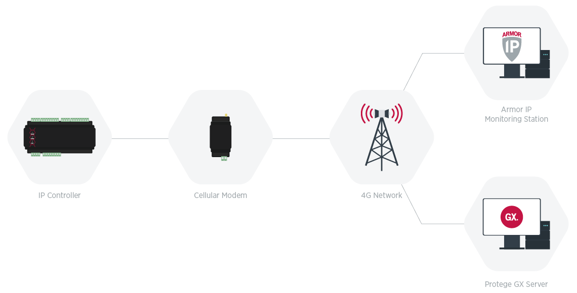It can also be used in remote locations, so even if there is no internet access, you can still connect the controller to your Protege system.